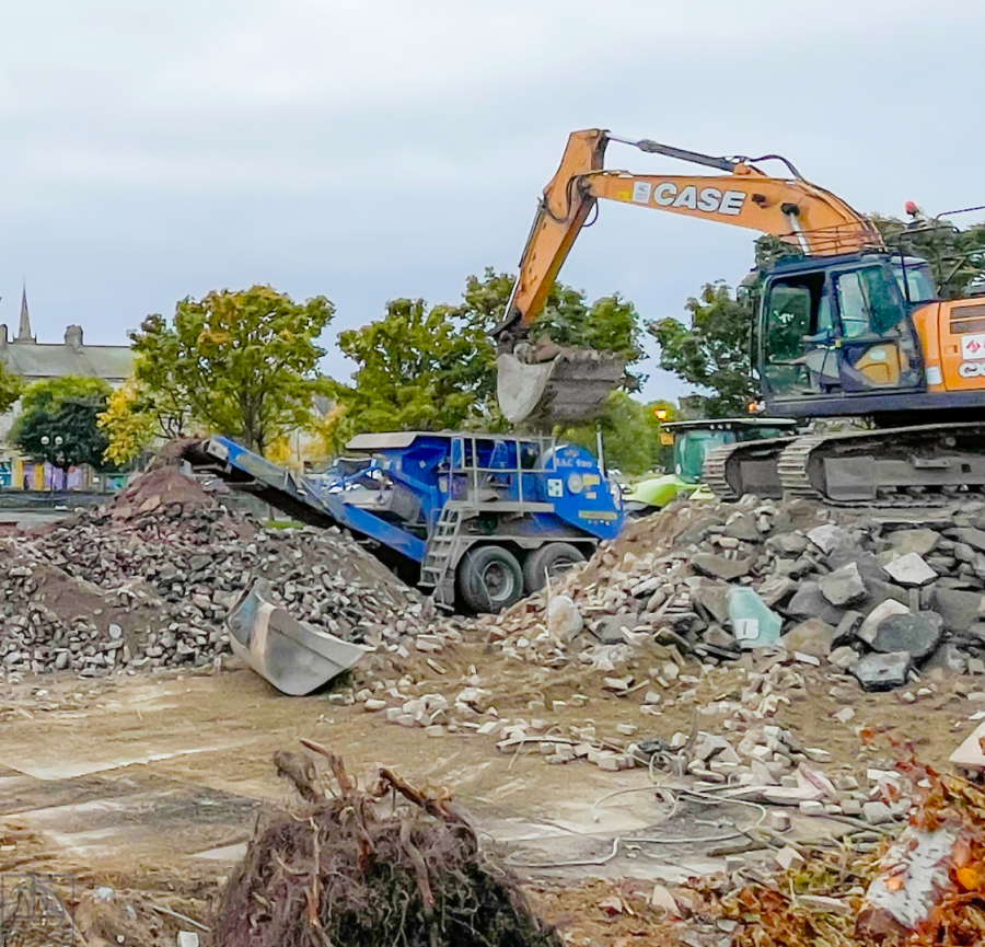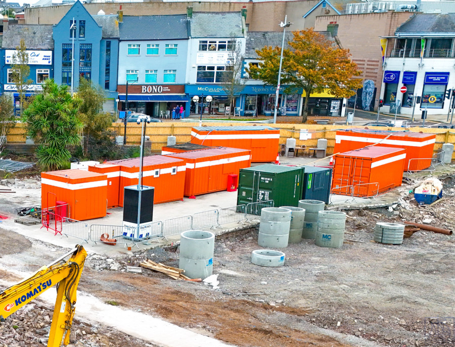 Already, the changes on site are striking. In little more than a week, the contractor’s compound has shifted from the plaza to a new base around the McKee Clock, where a cluster of orange cabins now forms a temporary site village. Across the wider site, diggers, trucks and heavy machinery have been busy preparing the ground.