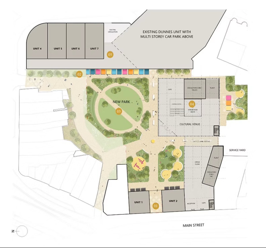 The proposal sets out an innovative plan to repurpose the former shopping centre into a place that supports a mix of office, retail, leisure and public green space. Fully funded through private sector investment, the scheme promises to complement the wider regeneration of Bangor city centre, alongside the major developments now progressing at Queen’s Parade and Marine Gardens.
